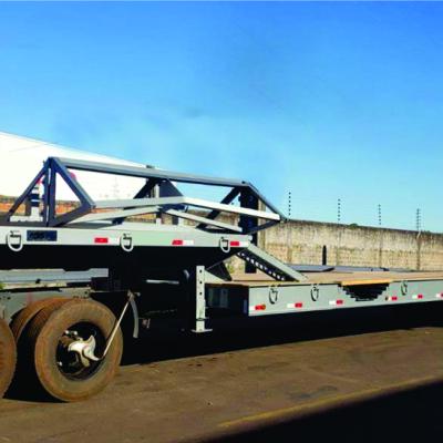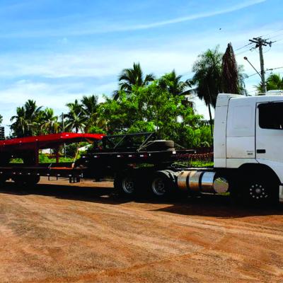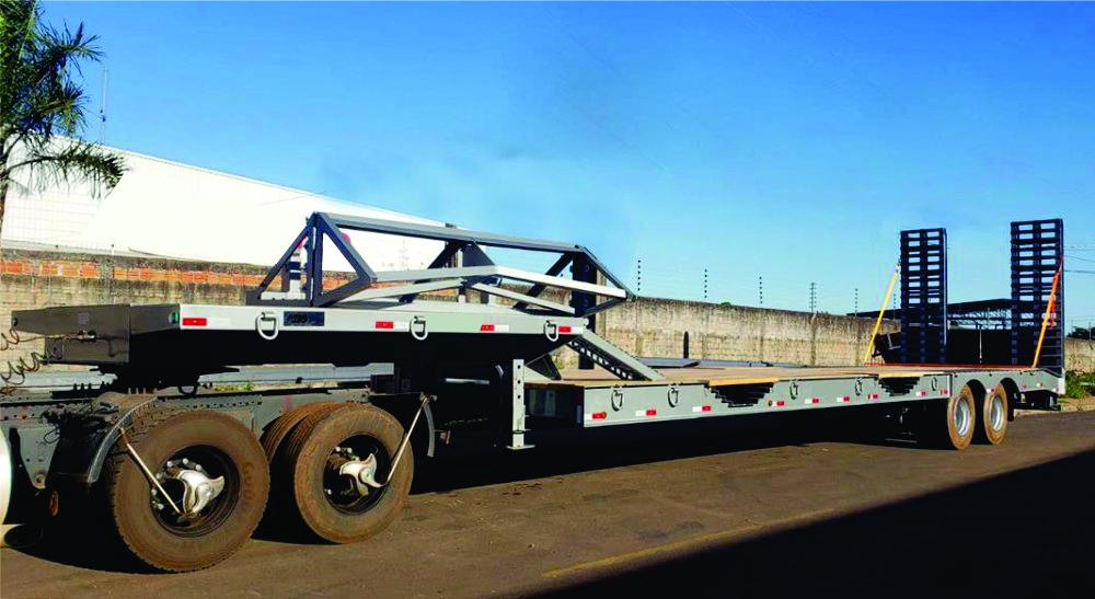A prancha carrega tudo agrícola 2 eixos JR Implementos Rodoviários foi projetada para ter o melhor desempenho no transporte, sua estrutura é toda desenvolvida em viga "I" (perfil "W"), a cobertura sobre os rodados em chapa de aço, que além de proteger os pneus de avarias, aumenta a segurança no carregamento e descarregamento de máquinas e também pode ser usado como plataforma de carga.