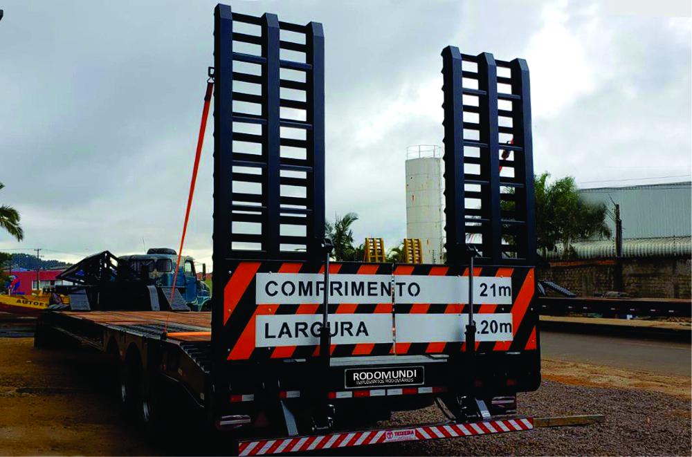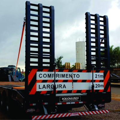 A placa traseira de sinalização de veículo longo é fixa e bipartida, permitindo o manuseio independente das rampas sem a retirada das placas. Agilizando o processo de carga e descarga.