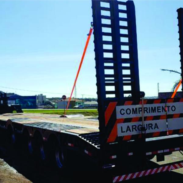 A placa traseira de sinalização de veículo longo é fixa e bipartida, permitindo o manuseio independente das rampas sem a retirada das placas. Agilizando o processo de carga e descarga.